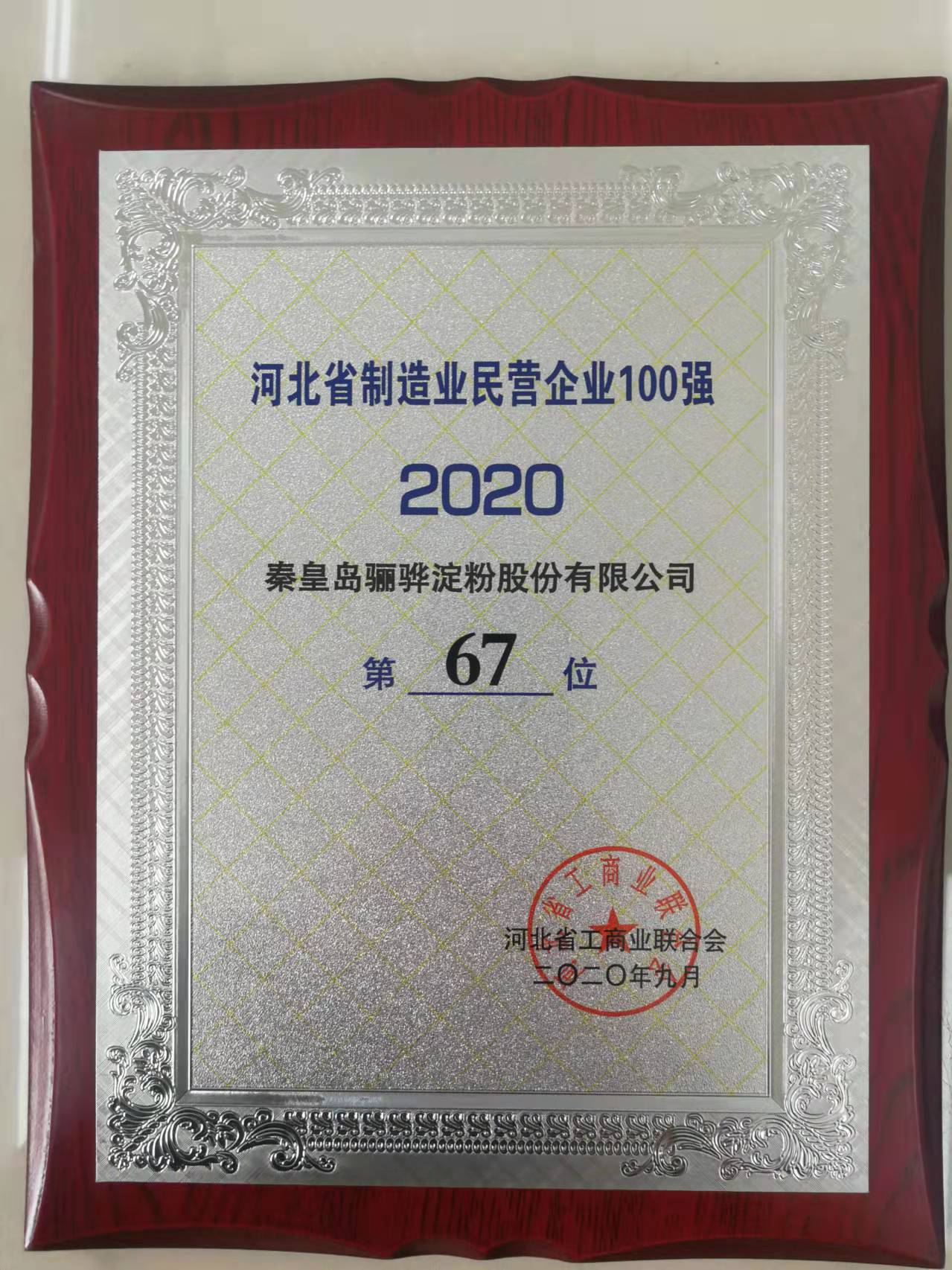 河北省制造業(yè)民營(yíng)企業(yè)100強(qiáng)第67位